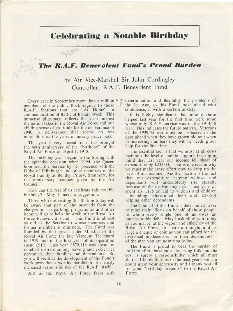| Go to Picture Stories homepage | Go to Chronicle for 1958 | Go to RAF History Page for RAF Honington |