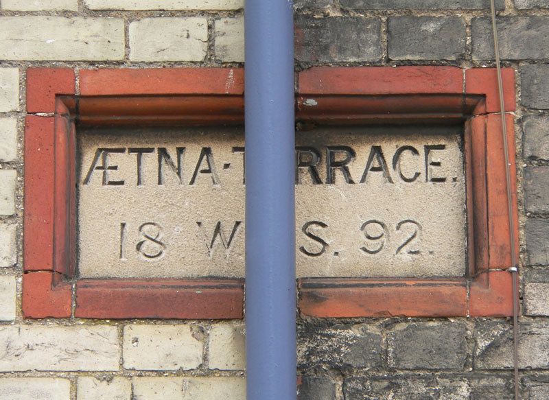 Aetna Terrace 1892 WJS The 'J' is obscured by a downpipe |