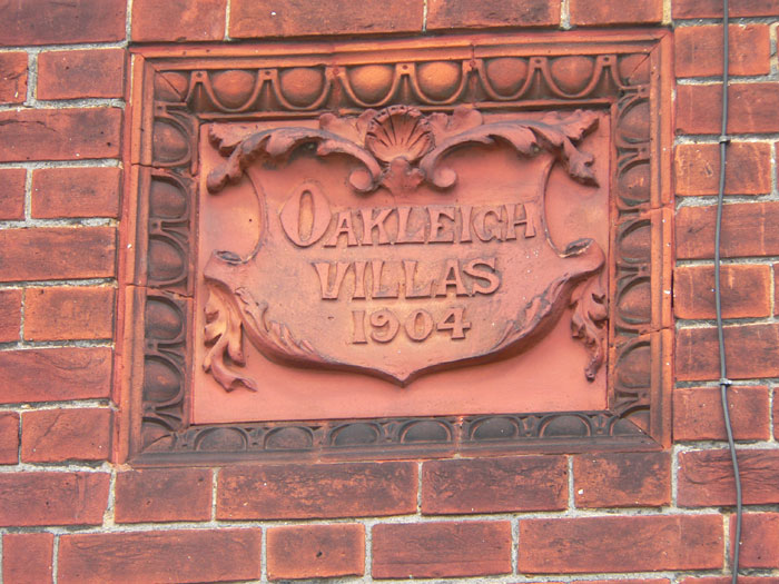 Oakleigh Villas 1904 Westley Road A magnificent moulded plaque |