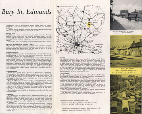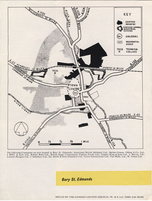 "An Opportunity for Industry Bury St Edmunds" was a document prepared by the London County Council, dated August 1964 |