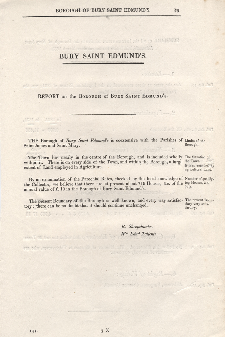 Commissioners' report on the boundaries of Bury St Edmunds - "every way satisfactory".