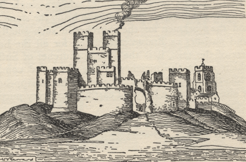 Key to the oldest map, re-drawn and published in Lilian Redstone's "Suffolk" of 1930. The three towered castle at the top of the map represents York. Not all of the markings on the original have been reproduced and translated.