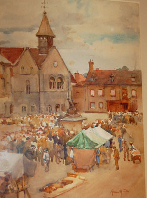 This picture by Rose Mead is one of several pictures of Bury's market painted by Rose Mead. |