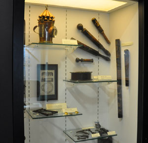 This case of shotguns shows the work of local gunsmiths. |