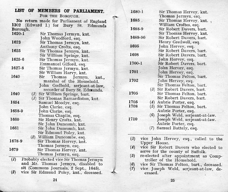 On the other hand, the 1947/48 Yearbook of Bury St Edmunds Borough Council stated ; "No return made for the Parliament of England 1302 (Edward I) for Bury St Edmunds Borough."