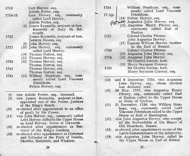 Sir William Hervey was now elected as the second MP for Bury. The Herveys had been squires of Ickworth since the 15th Century but from 1628 the family would continue in Parliament and public life until 1906.