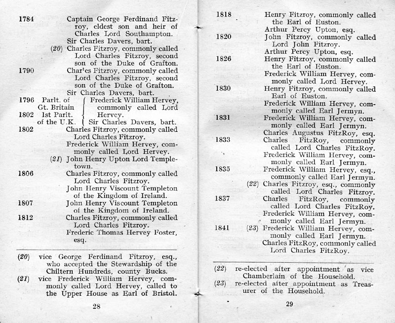 Sir Charles Davers, who had held one of Bury's two parliamentary seats since 1774, stood down with no heir to follow him. James Oakes, who by now was over 60, immediately decided to offer his services as political agent to the Earl of Bristol. He held the same office already for the Duke of Grafton. For the next 25 years the FitzRoys and the Herveys shared the two seats whatever the state of politics in the country as a whole.