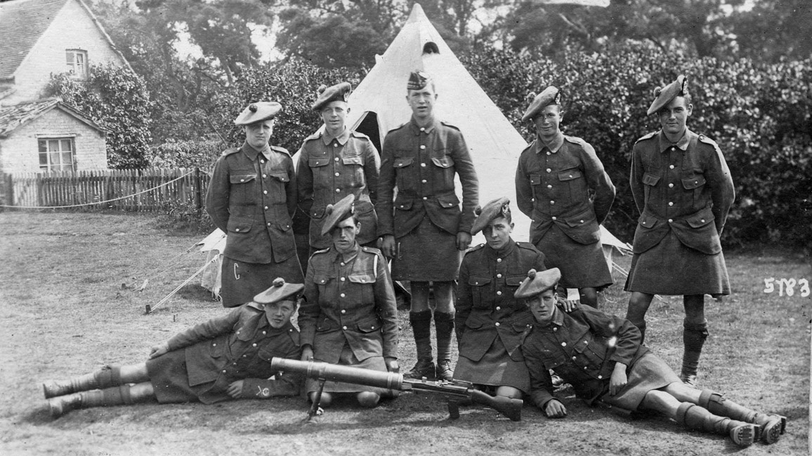 This picture of Gordon Highlanders at West Stow camp is negative number 5783, and is dated to 7th August, 1918.