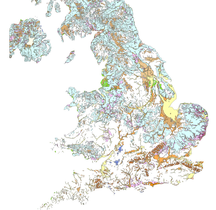 You should now see only areas of yellow alluvium and brown peat. Note that there is no clear coastline. In order to show the coast we will need to find another layer of coast, and a good source will be the OS OpenData Strategi file.