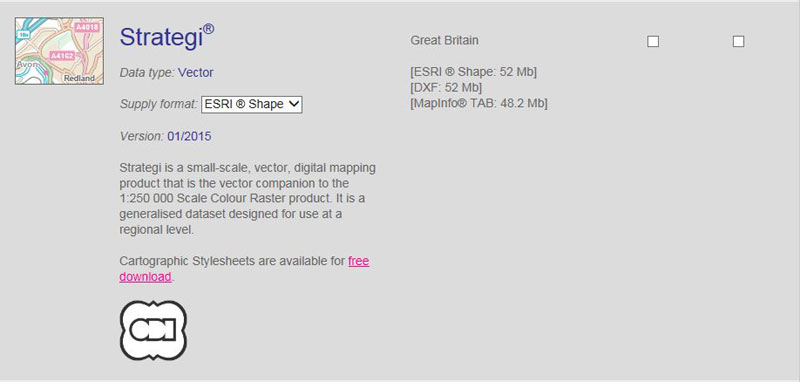 Now go back to the link shown above: OS OpenData downloads page Scroll down to the entry for Strategi once again and this time look for the "Cartographic Stylesheets are available for free download" entry and follow the link. Select the 'Download' option next to the Strategi entry in the list of available stylesheets. Try to save it with your Strategi data for reference. Also offered on this page is: