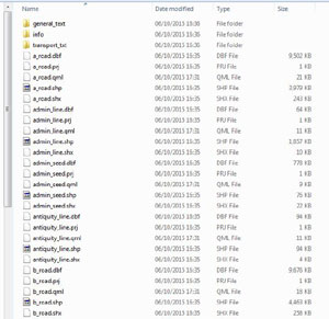 Now we have to do some file moving, using, not QGIS, but our usual operating system tools. In my case it is Windows Explorer. Hopefully you already know how to drag and drop files from one folder to another. Find your unzipped stylesheet file and open it. It should be a folder called 'Strategi-stylesheets-master'. Double click to open it and work your way through to 'ESRI Shapefile stylesheets' and open that by double clicking. Then double click on folder 'QGIS stylesheets (QML)'. Now you get a choice of 'Full Colour style' or 'Backdrop style'. I chose full colour. Now for ease of use, get all the .qml files sorted together. Do this by 'View/Sort by/Type'. Click on the topmost qml file, press and hold shift and click on the bottom most qml file. All qml files should be highlighted. Now open separately the 'strtgi_essh_gb' file, and double click your way through until you get to folder 'data' and open it. This is where you want your style files to reside. Go back to your highlighted qml files, and using a Right click, drag them into the 'data' folder. Release and select 'Copy here', and our styles should be in the right place. Your data folder should now look a bit like the picture adjacent, with qml files mixed with .shp , .prj etc files.