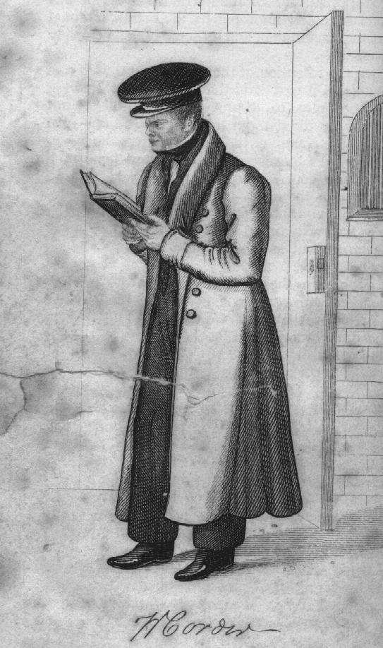 "...My advice to you is, not to flatter yourself with the slightest hope of mercy on earth. You sent this unfortunate young woman to her account, with all her imperfections upon her head, without allowing her any time for preparation. She had not time to lift up her eyes to a throne of grace, to implore mercy and forgiveness for her manifold transgressions -she had no time allowed her to repent of her sins - no time granted to throw herself upon her knees, to implore pardon at the Eternal Throne! The same measure which you meted to her is not meted out to you again. A small interval is allowed you for preparation. Let me earnestly entreat you to use it well - the scene of this world closes upon you - but, I hope, another and a better world will open to your view. Remember the lessons of religion, which you, doubtless, received in your childhood - consider the effects which may be produced by a hearty and sincere repentance - listen to the voice of the ministers of religion who will, I trust, advise and console you, so that you may be able to meet with becoming resignation and fortitude that dreadful ordeal which you will have shortly to undergo. Nothing remains now for me to do but to pass upon you the awful sentence of the law, and that sentence is - That you be taken back to the prison from whence you came, and that you be taken from thence, on Monday next, to a place of Execution, and that you there be hanged by the Neck until you are Dead ; and that your body shall afterwards be dissected and anatomized ; and may the Lord God Almighty, of his infinite goodness, have mercy on your soul! " (Curtis p. 248) After the sentence was pronounced, Corder broke down, and was led sobbing from the bar. He may have been expecting an acquittal. Indeed, the women in his family, hopeful of his release, had ordered a chaise to take him home. He returned to the prison a condemned man. He had to change out of his own fashionable clothes into prison clothing and was moved from his "convenient apartment at the front of the prison" to a condemned cell. Even though suicide did not appeal to Corder (he said several times "Why should I destroy myself, and thus heap one sin upon another?") he was put under constant watch. In the 19th century it was thought that crimes committed in life would affect the progress of the eternal soul. Punishment was not regarded simply as retribution, but as a way for a criminal to gain divine forgiveness and redemption. However, as the Judge's words made clear, there was no hope of either without repentance. |