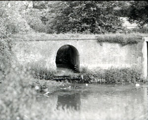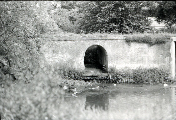 Mill Farm, Millstream outlet seen in 1972 This brickwork was part of water management just below the lock at the Fornham Water Mill. |