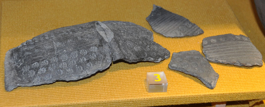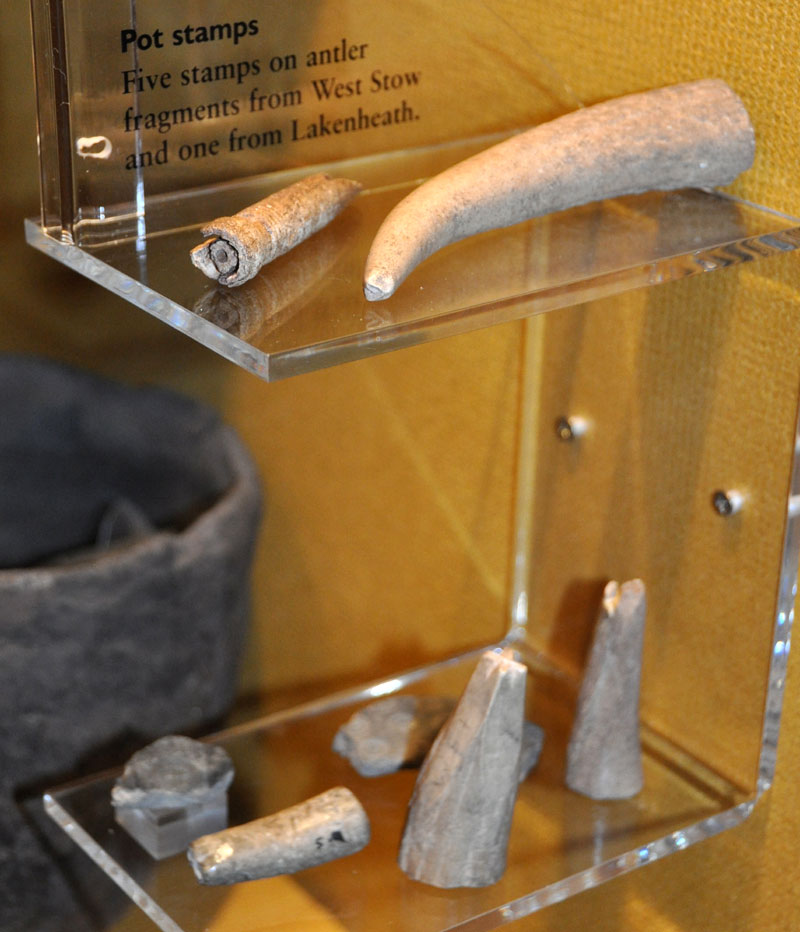 Early pottery from the site was decorated by finger pressure. Later on it became fashionable to use stamped motifs using incised bone or antler stamps. Five of these are from West Stow and one from lakenheath. |