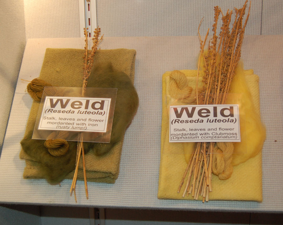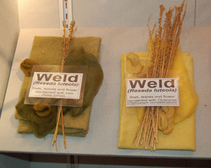 Weld used as a dye produces different colours depending upon the mordant used. A mordant is a substance used to set dyes on fabrics. |