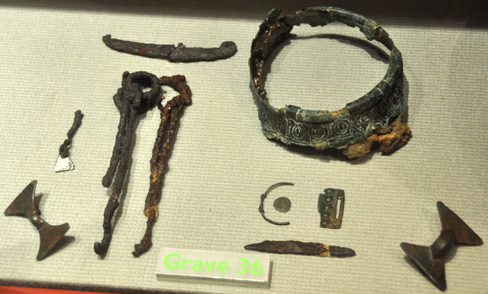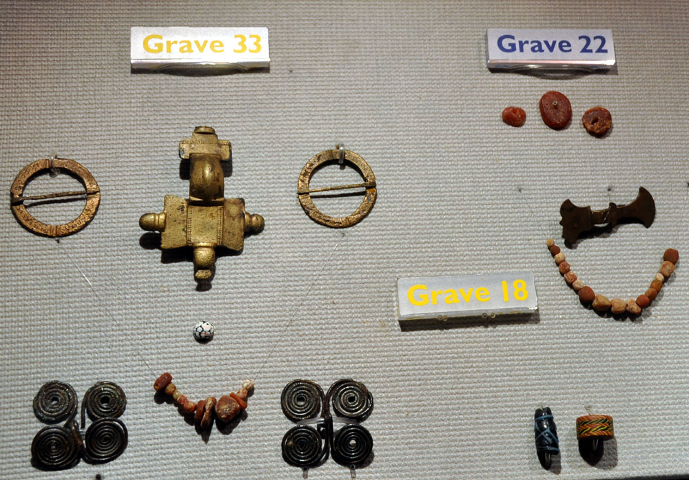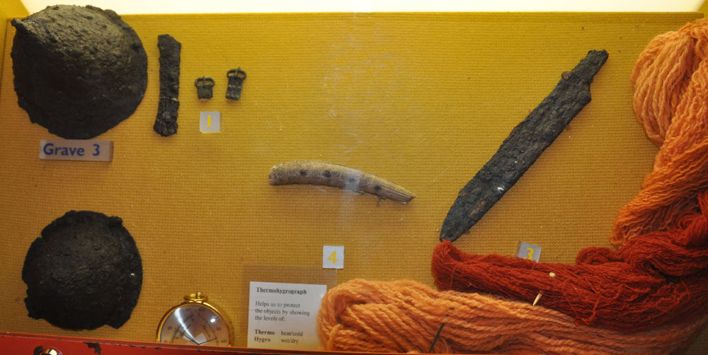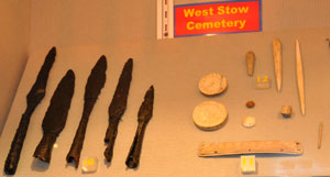 Objects recovered from Mitchell's Hill in Icklingham. This was another Anglo-Saxon cemetery located beside the old Roman settlement, but on its western side. |