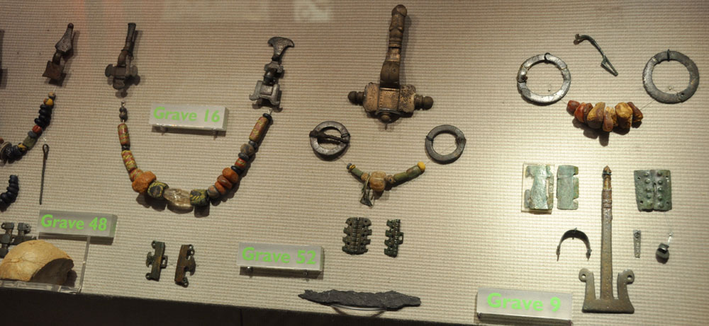 Grave goods from female burials at Westgarth Gardens graves 9 & 16 &48 & 52. |