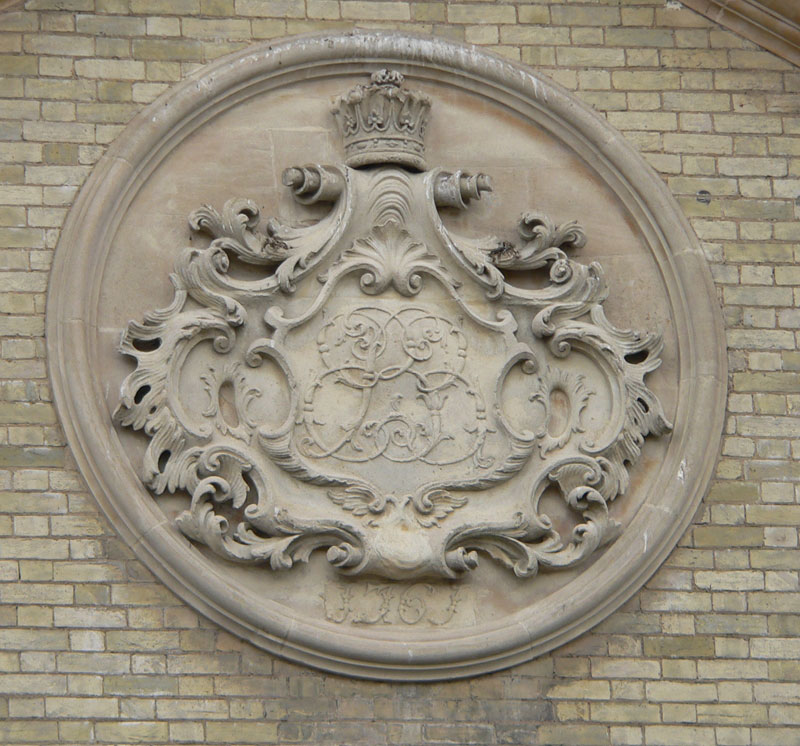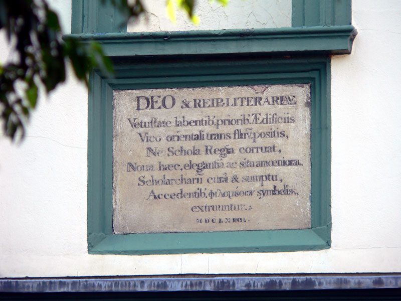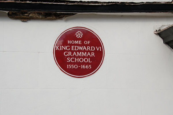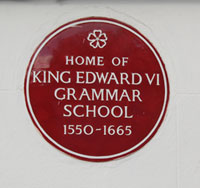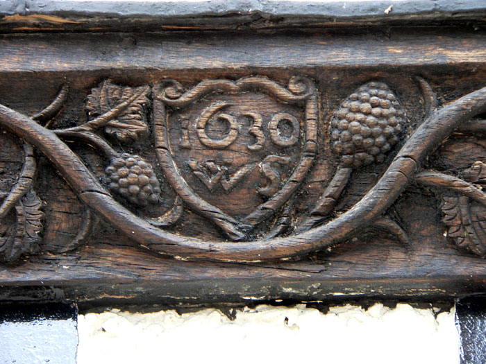 Plaque over door of old Grammar School in Northgate Street, dated 1664. The school moved to the Vinefields in 1883. |