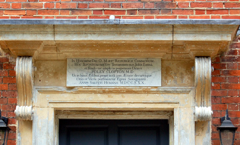 Plaque on Clopton's Asylum or Almshouse Now the Dean's House Commemorating Dr Poley Clopton, who died 1730 This plaque was carved by Thomas Singleton and erected c1750