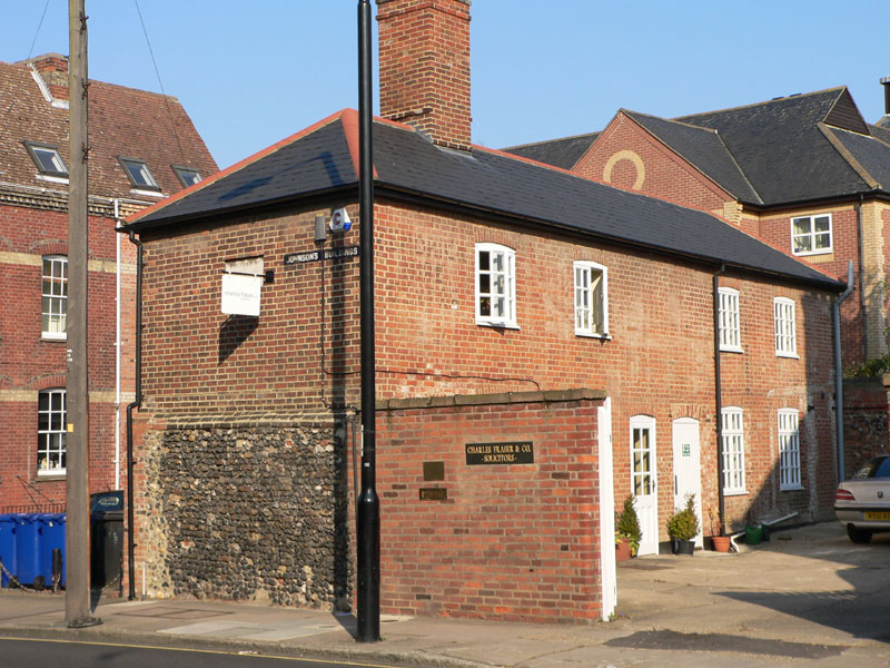Johnson's Buildings Northgate Street, Bury St Edmunds These were actually built in 1839 by Francis Clarke to replace four decayed charity properties in Looms Lane. |