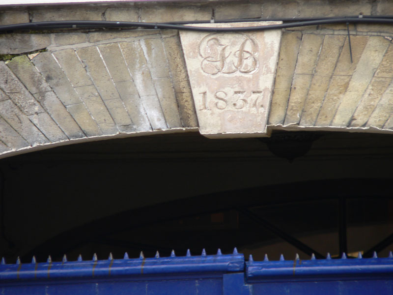 J B's initials, 1837 Grapes Inn Yard Joseph Baker was licensee at this time when the inn was called the Cock. Henry Braddock's Southgate Brewery owned it. |