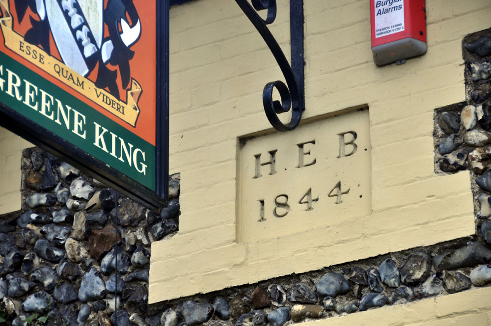 Plaque on the Bunbury Arms commemorating Sir Henry Bunbury. H E B 1844 . |