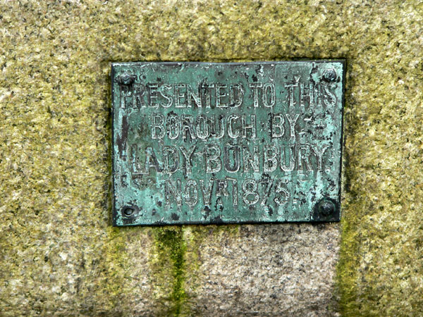 Horsetrough Plaque Presented to this Borough by Lady Bunbury, November 1875 |