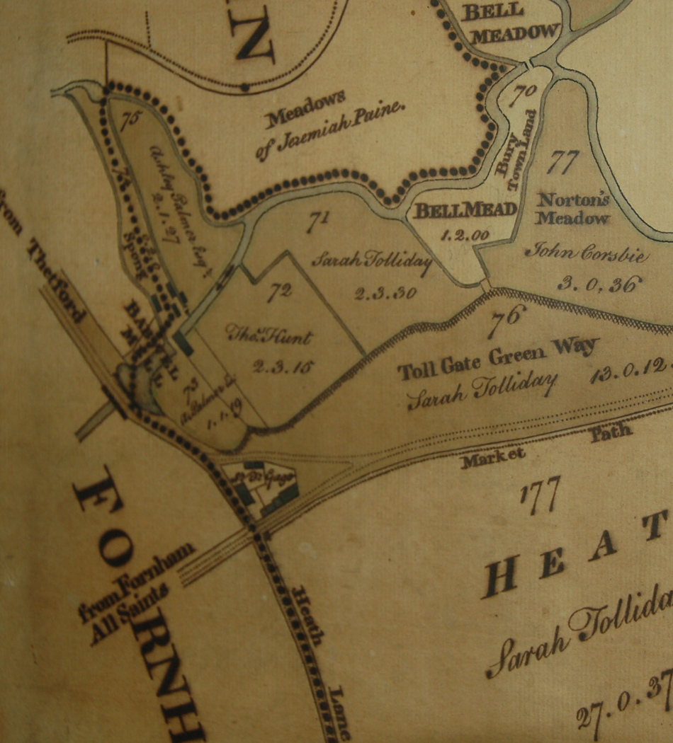 In 1822 John Gage reckoned there were four ancient mills in Fornham All Saints, but he failed to specify if these were watermills or windmills. He named them as |