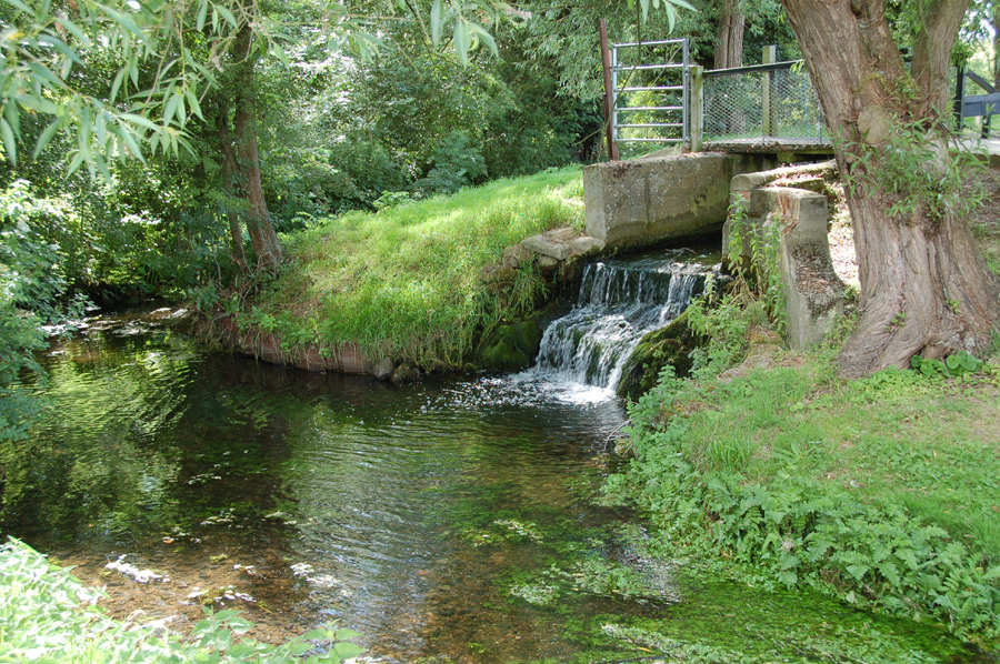 Pakenham Mill Pond overflow Excess water in the millpond is allowed to escape around the mill |